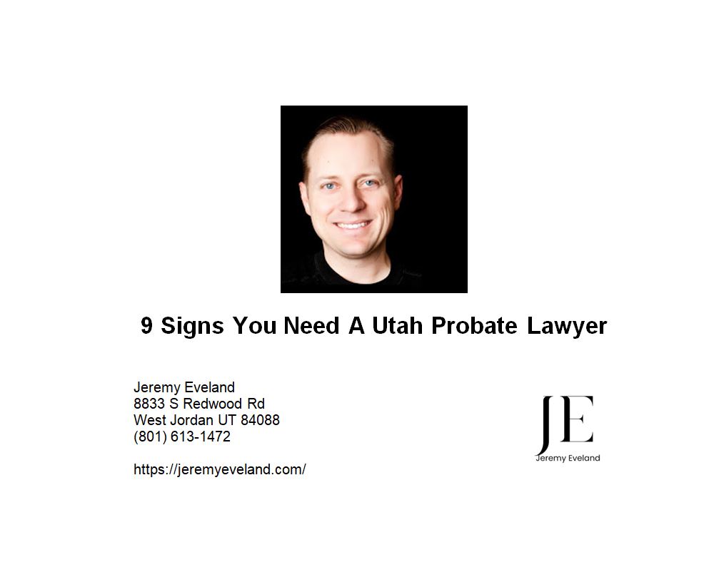 If one of these signs sounds familiar, contact Attorney Jeremy Eveland at (801) 613-1472 for Utah probate and estate planning legal services.